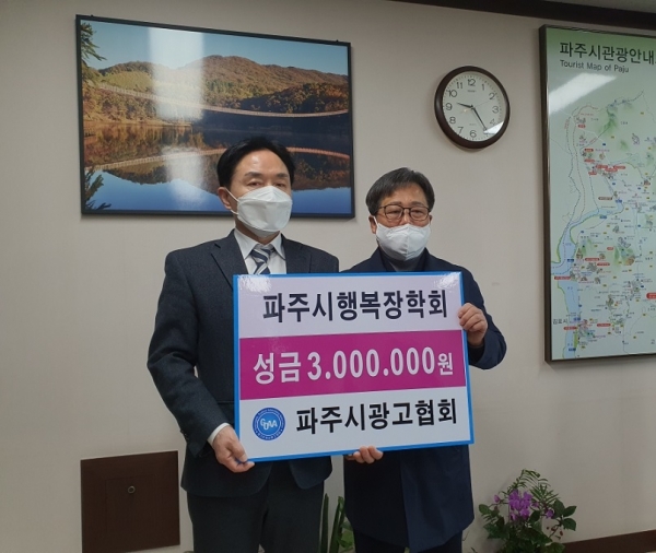 파주시광고협회는 2015년부터 8년에 걸쳐 파주시 읍면동 행정복지센터에 각 100만원씩 총 3,000만원의 이웃돕기성금을 전달했으며 후학양성에도 관심을 갖고 파주시행복장학회에 300만원, 파주시청소년재단에 200만원, 파주희망푸드뱅크에 100만원 등 총 8,320여만원의 장학금과 이웃돕기성금을 기부해왔다.