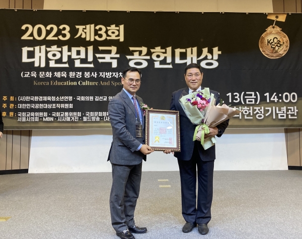대한민국 공헌대상은 의정·문화·교육·체육 등 7개 전문분야에서 탁월한 업적을 이루고 사회발전에 중추적 역할을 한 인물을 선정해서 수여하는 상으로 지난 2018년부터 실시해왔다.
