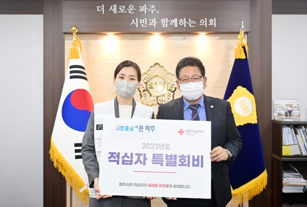한편 대한적십자사는 적십자회비 모금을 통해 위기가정과 지진, 호우 등 재난을 당한 이재민을 대상으로 인도주의 사업을 전개하며 나눔과 봉사에 앞장서고 있으며 파주시의회는 어려운 이웃에게 희망을 전달하는 의미로 매년 적십자 특별회비를 납부해 오고 있다.