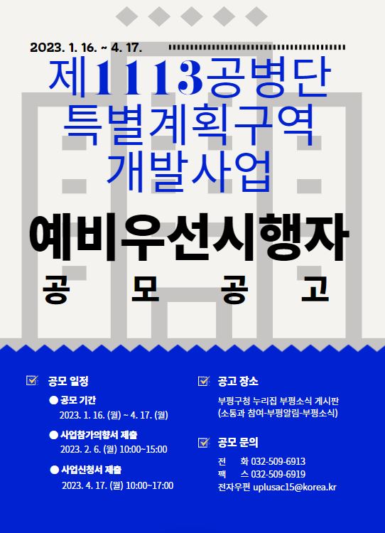 부평구, 제1113공병단 예비우선시행자 공모 시행
