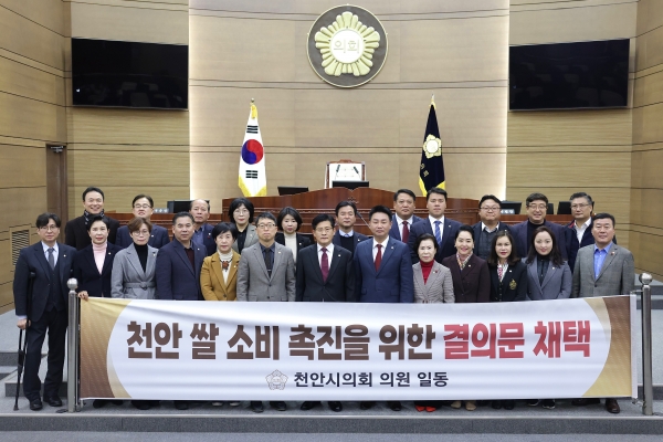 천안시의회는 김철환 의원과 함께 천안 쌀 소비 촉진 경쟁력 강화를 위해 천안시 지역 내에 주조업체의 천안 쌀 구매 확대와 판로지원 및 홍보 등의 각종 시책 마련을 촉구하며 이에 대한 조속한 추진을 요구했다.