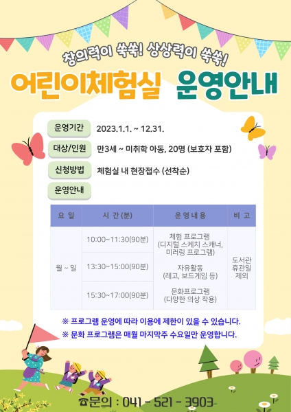 천안시 두정도서관, 12월까지 어린이체험실 운영
