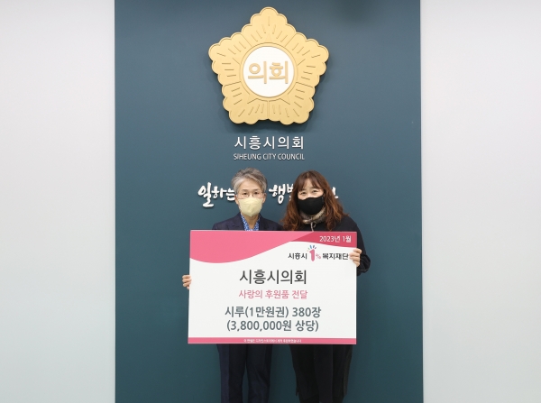 [금요저널] 경기 시흥시의회가 1월 18일 설 명절을 맞아 의회 청사 로비에서 전달식을 갖고 시흥시1%복지재단에 시흥화폐 시루 380만원을 후원했다.