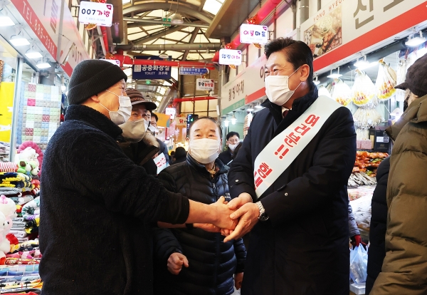 또 장을 보러 나온 시민들과도 인사를 나누며 전통시장을 이용해 줄 것을 권장했으며 가족과 함께 따뜻한 명절을 보내길 바라는 덕담을 나눴다.