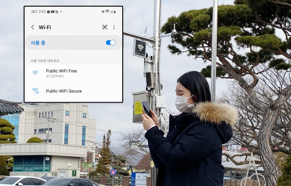 시민들은 공공와이파이가 설치된 곳에서 ‘Public WiFi Free’를 선택하면 되며 보안이 요구될 경우는 ‘Public WiFi Secure’를 선택하고 ID와 비밀번호에 각각 ‘WIFI’를 입력하면 된다.