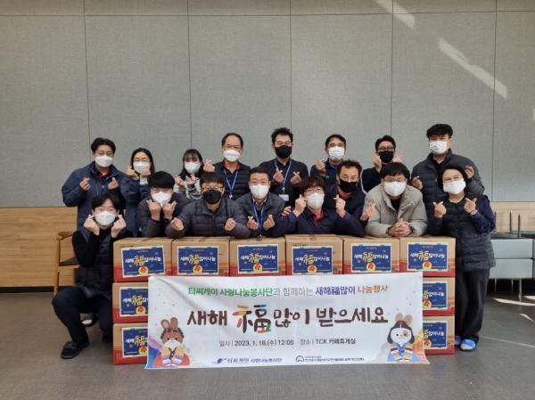 ㈜티씨케이 사랑나눔봉사단 신상헌 회장은 작년 크리스마스 행사 때 참여 직접 선물을 만들고 카드도 작성하는 뜻깊은 시간을 가진 좋은 기억이 있다 이번에도 취약계층과 함께 설을 나누는 시간을 갖기로 했다”고 전했다.