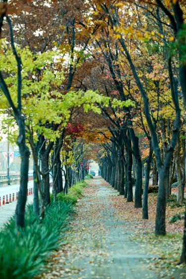 이팝나무, 배롱나무, 은행나무, 버드나무, 대왕참나무, 메타세콰이아, 느티나무, 소나무 등 아름다운 가로수가 줄지어있는 가로수길을 볼 수 있다.