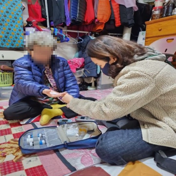 방문간호사는 취약계층 가정을 방문해 혈압, 혈당 등 기초건강을 측정해 대상자들의 건강 상태를 모니터링하고 따뜻한 겨울나기를 위한 담요, 장갑 등의 방한용품과 겨울철 건강 수칙 안내문을 제공하고 있다.