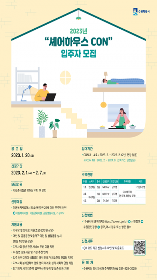 [금요저널] 수원시가 ‘자립준비청년 셰어하우스 CON’에 입주할 자립준비청년 7명을 모집한다.