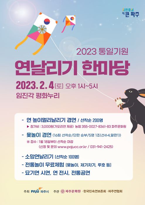 [금요저널] 파주시는 오는 2월 4일 임진각 평화누리에서 ‘2023 통일 연날리기 한마당 행사’를 개최한다.