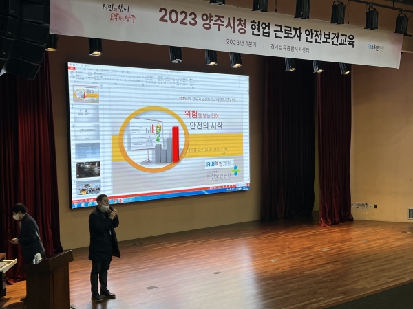 [금요저널] 양주시는 지난 30일 경기섬유종합지원센터 대강당에서 양주시 소속 현업근로자와 수탁기관 근로자 92명을 대상으로 산업재해 예방을 위한‘2023년 1월 안전보건교육’을 실시했다.