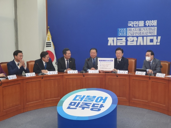 [금요저널] 전국 지자체 최초로 모든 가구에 에너지 생활안정지원금 지급을 결정한 김경일 파주시장이 1일 서울 여의도 국회에서 열린 더불어민주당 최고위원회의에서 지방정부 우수사례를 발표했다.