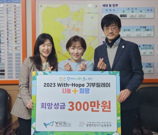 [금요저널] 광명시 소하2동 한부모가정 10가구에 예스이엔씨에서 2월 1일 300만원의 후원금을 전달했다.