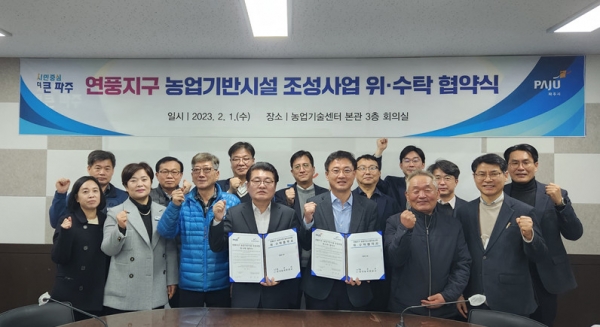 [금요저널] 파주시는 1일 한국농어촌공사 파주지사와 ‘연풍지구 농업기반시설 조성사업’ 위·수탁 협약을 체결했다.