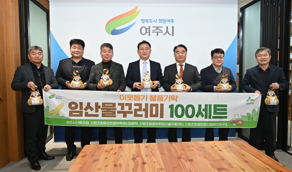 [금요저널] 여주시 산림조합과 산림조합중앙회 중부목재유통본부, 임산물유통센터, 산림버섯연구소에서는 다가오는 정월대보름을 맞이해 임산물꾸러미 100세트를 여주시에 기탁했다.