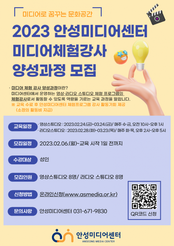 안성미디어센터, ‘체험강사 양성과정’ 교육생 모집