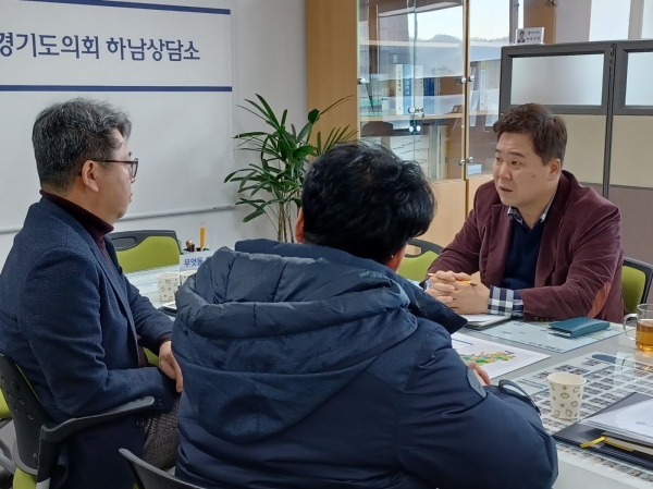 [금요저널] 경기도의회 도시환경위원회 김성수 의원은 6일 경기도의회 하남상담소에서 경기주택도시공사 하남사업단 단장으로부터 하남교산 공공주택지구 주민생계조합 협의 추진현황을 보고받고 주요 현안을 논의하는 자리를 가졌다.