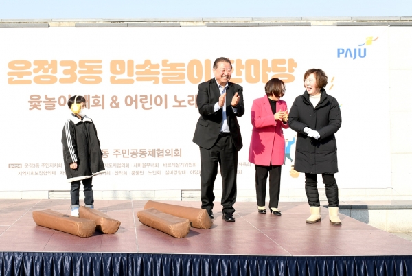 이날 민속놀이 한마당에는 김경일 파주시장, 윤후덕 국회의원, 이용욱 도의원, 조성환 도의원, 손성익 시의원 및 관내 기관·단체 관계자와 약 1,000여명의 시민이 참석해 올 한 해의 만복을 기원하고 넉넉한 인정을 나누는 자리를 함께했다.