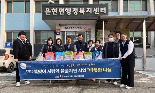 [금요저널] 양주시 은현면은 지난 6일 지역사회보장협의체에서 정월대보름을 맞아 소외된 이웃을 돕기 위해 ‘대보름 나기 물품 지원사업 : 따뜻한 나눔’전달식을 가졌다고 밝혔다.