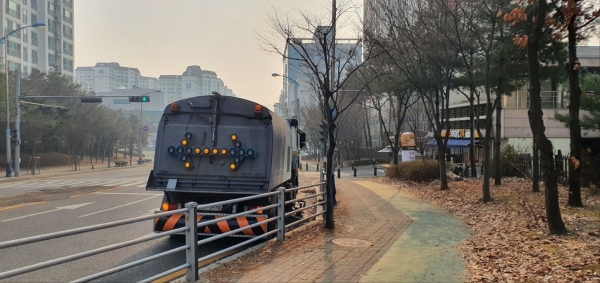 시는 옥정, 덕정, 고읍지구, 회천지구, 국지도 98호선 등 미세먼지 집중관리도로 5개소에 노면청소차, 살수차 등 총 9대를 2개조로 편성·투입해 운행시간과 운행거리를 확대하고 일 2회 이상 구간 청소를 집중 실시했다.
