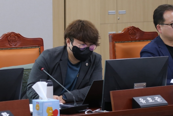 유호준 의원은 약 5분간 이어진 반대 토론을 마무리하며 “경기도의 청년들이 30년 50년 미래의 지구의 미래를 걱정하지 않고 온전한 자신의 미래를 꿈꿀 수 있는 결정을 부탁드린다”며 청년 세대의 입장을 대변한 뒤 “경기도의 아이들이 개나리가 봄에만 피었었다며 과거형으로 말하지 않을 수 있도록 노력해 주실 것”을 요청하며 기후변화로 한겨울인 지난달 개나리가 피어난 사례를 언급하며 미래세대를 위한 고민을 당부했다.
