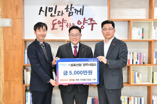 이날 시청 시장실에서 진행한 나눔명문기업 가입식에는 강수현 양주시장, 김선배 ㈜삼표산업 대표이사, 최현 ㈜삼표산업 양주사업소장이 참석했으며 기부금은 관내 어려운 이웃들을 위해 사용될 예정이다.