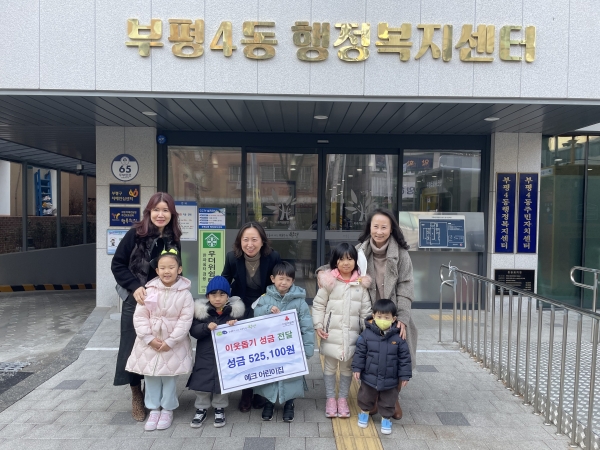 [금요저널] 부평구 부평4동은 지난 8일 지역에 위치한 예크어린이집으로부터 어려운 이웃을 위한 성금 52만5천100원을 전달받았다.