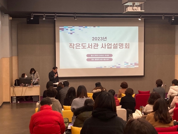 이날 작은도서관 냉·난방지원 클라우드기반 도서관리시스템 지원 연간독서 프로그램 지역강사 연계사업 협력 프로그램 등 지원 부서별 사업 계획을 안내했으며 평소 정산에 어려움을 겪는 작은도서관을 위해 보조금 정산 교육도 함께 진행됐다.