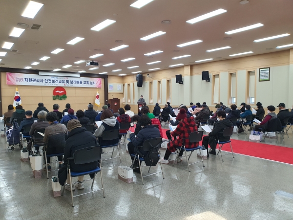 이번 교육은 ‘재활용 정거장’에 배치되는 자원관리사를 대상으로 주민들의 재활용률 향상을 위한 올바른 분리배출 방법과 작업장 안전보건 교육에 대한 내용으로 진행됐다.
