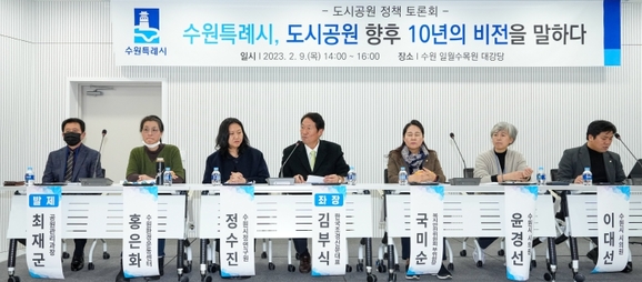 수원시는 9일 일월수목원 강당에서 ‘2023년 도시공원 정책토론회’를 열고, 시민들과 함께 수원시 도시공원의 비전을 논의했다.