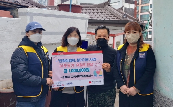 이에 따라 송림4동은 지난해부터 추진 중인 ‘만원의 행복’ 정기 기부사업으로 조성된 사회복지공동모금회 예치금에서 현금 100만원을 지원했다.