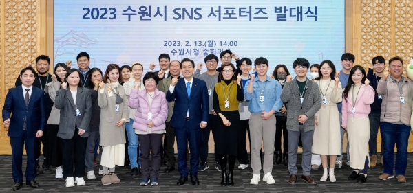 [금요저널] 수원시는 13일 오후 2시 시청 중회의실에서 ‘2023년 수원시 SNS 서포터즈 발대식’을 개최해 서포터즈 35명에게 위촉장 및 서포터즈증을 전달했다.
