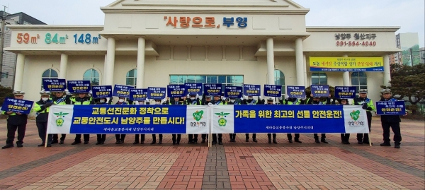 새마을교통봉사대 남양주시지대는 시민의 소중한 생명을 지키고 교통사고 없는 대한민국을 만들기 위해 캠페인을 진행하며 안전한 교통 환경 조성에 힘썼다.