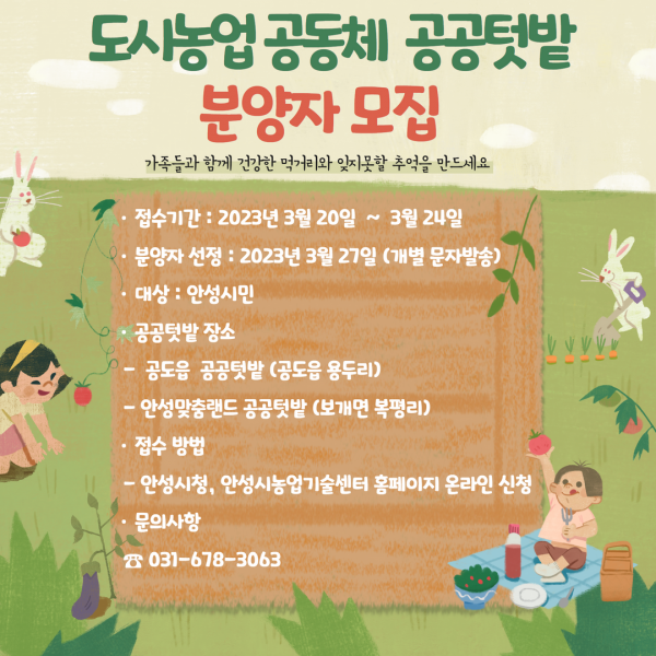 안성시, ‘도시농업공동체 공공텃밭’ 분양자 모집