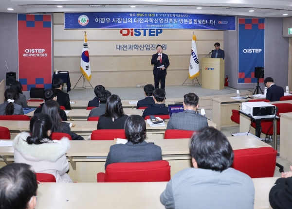 먼저 대전과학산업진훙원을 찾은 이 시장은 인사말에서 가장 젊은 직원이 누구냐고 물으며 “직원이 젊다는 것은 미래가 있다는 의미다”며 “여러분의 어깨에 대전의 미래가 달려 있다”고 말문을 열었다.
