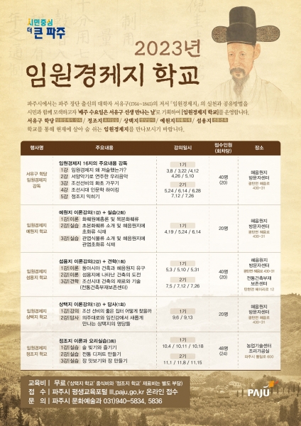 파주시, 시민과 함께 하는‘2023년 임원경제지 학교’운영