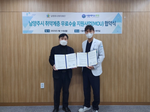이번 협약은 경제적 어려움으로 인해 필요한 수술과 치료를 받지 못하고 있는 취약계층에 무료 치료 및 일부 수술·진료·검사비 등을 지원하기 위해 마련됐으며 남양주시복지재단은 사업 대상자 발굴 및 추천 기타 행정적 지원, 서울에이스병원은 사업 대상자 의료 복지 지원에 적극 협력할 예정이다.