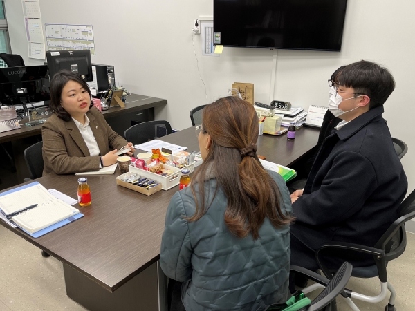 이자형 의원은 이날 도의회 의원실에서 초록우산어린이재단 경기지역본부 정희영 팀장 및 구준선 대리와 만나 가족돌봄청년들의 현 실태를 듣고 실효성 있는 지원내용을 함께 고민하기 위한 자리를 가졌다.