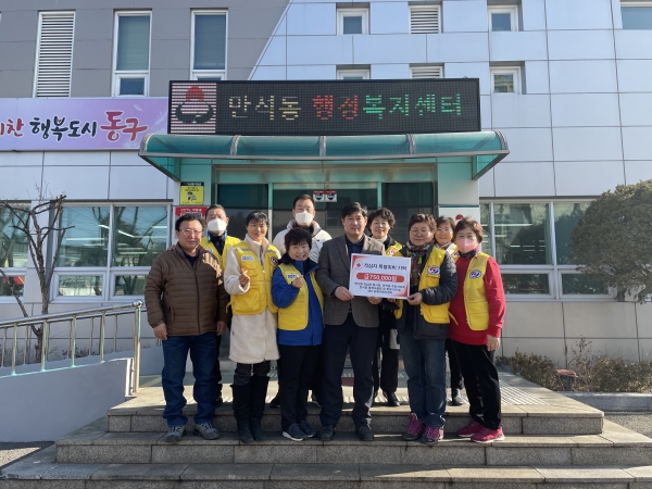 유성곤 만석동장은 “적십자 특별회비로 작은 보탬이 되어 추운 겨울 우리 주변의 소외된 이웃들에게 따뜻한 온기가 전해지길 바란다”며 “구민을 위해 봉사하는 마음을 잊지 않고 복지사각지대에서 소외되는 이웃이 없는지 다시 한번 살피며 지원에 최선을 다하겠다”고 말했다.