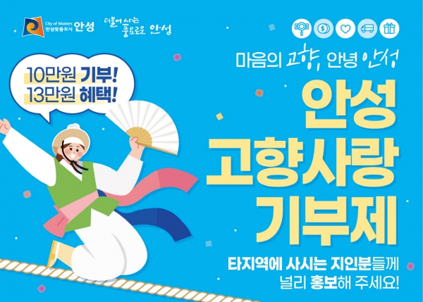안성시, 오는 22일 ‘고향사랑기부제’ 특강 및 홍보캠페인 전개