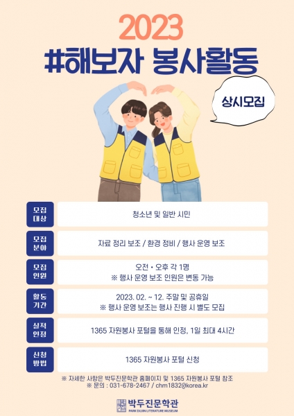 안성시 박두진문학관, 2023년 자원봉사자 모집