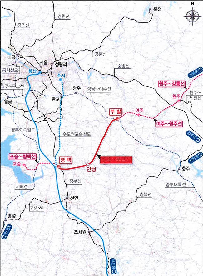 평택~안성~부발 철도 노선은 고속화 철도로 완공되면 평택에서 강릉까지 1시간 20분이면 가능해 교통수요 분담과 경기 남부 수도권의 균형발전 도모는 물론 지역경제 활성화가 기대된다.