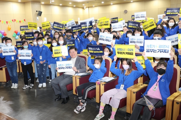 박승원 광명시장은 “어린이기자단으로 활동하게 된 것을 진심으로 축하하고 올 한 해 열심히 해주길 바란다”며 “여러분이 살고있는 광명시를 많이 알아가면서 여러분의 생각과 눈으로 바라본 우리들의 이야기를 많이 알렸으면 좋겠다”고 격려했다.