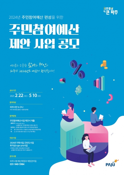 [금요저널] 파주시는 2월 22일부터 5월 10일까지 2024년도 예산 반영을 위한 주민참여예산 제안 사업 신청을 받는다.