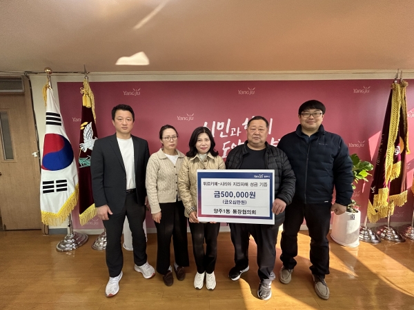 [금요저널] 양주시 양주1동 통장협의회는 22일 양주1동 행정복지센터를 찾아 지진피해를 본 튀르키예와 시리아를 돕기 위해 써달라며 성금 50만원을 기증했다.