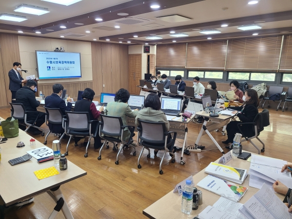 [금요저널] 수원시는 22일 영통구청 상황실에서 ‘2023년 제2차 수원시보육정책위원회’를 열고 연도별 보육계획 등을 심의했다.