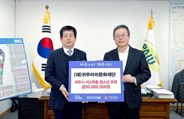[금요저널] 파주시는 22일 귀뚜라미그룹으로부터 장학금 5천만원을 전달받았다고 밝혔다.