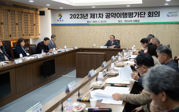 [금요저널] 연천군은 지난 22일 본관 2층 상황실에서 ‘2023년 제1차 공약이행평가단 회의’를 개최했다고 23일 밝혔다.