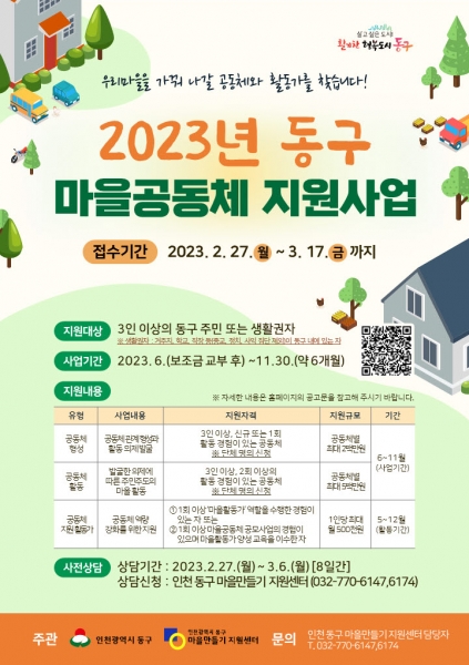 [금요저널] “우리 마을을 가꿔 나갈 공동체와 활동가를 찾습니다”인천 동구가 마을공동체 활성화를 위한 2023년 마을공동체 지원 사업 공동체와 활동가를 모집한다.