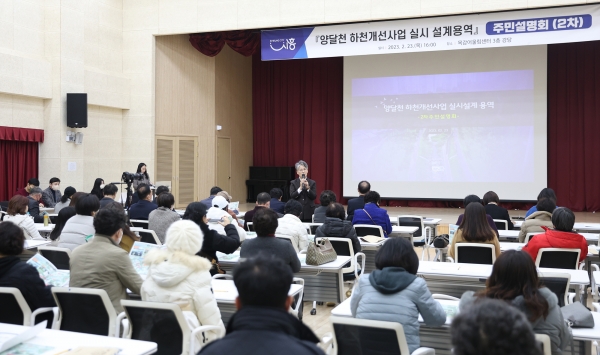 이날 주민설명회는 지난해 12월 22일 처음 개최된 제1차 주민설명회에서 나온 양달천 하천개선사업 실시설계 용역 관련 주민들의 의견에 대한 검토결과를 용역사 관계자가 설명하고 이에 대한 질의응답 및 의견수렴 형태로 진행됐다.